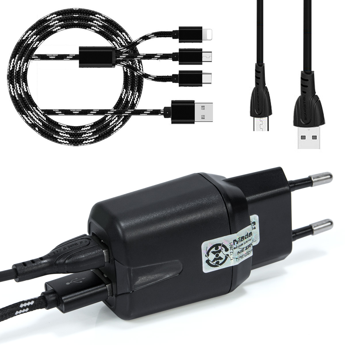Ładowarka Sieciowa do Telefonu 2x USB + Kabel microUSB + smycz – SMS-BLACK-MICRO-614 KF96